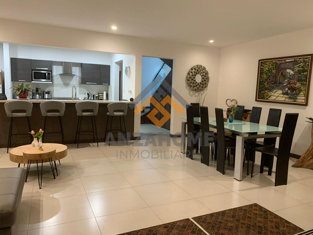 Sala comedor se integran con cocina moderna en concepto abierto