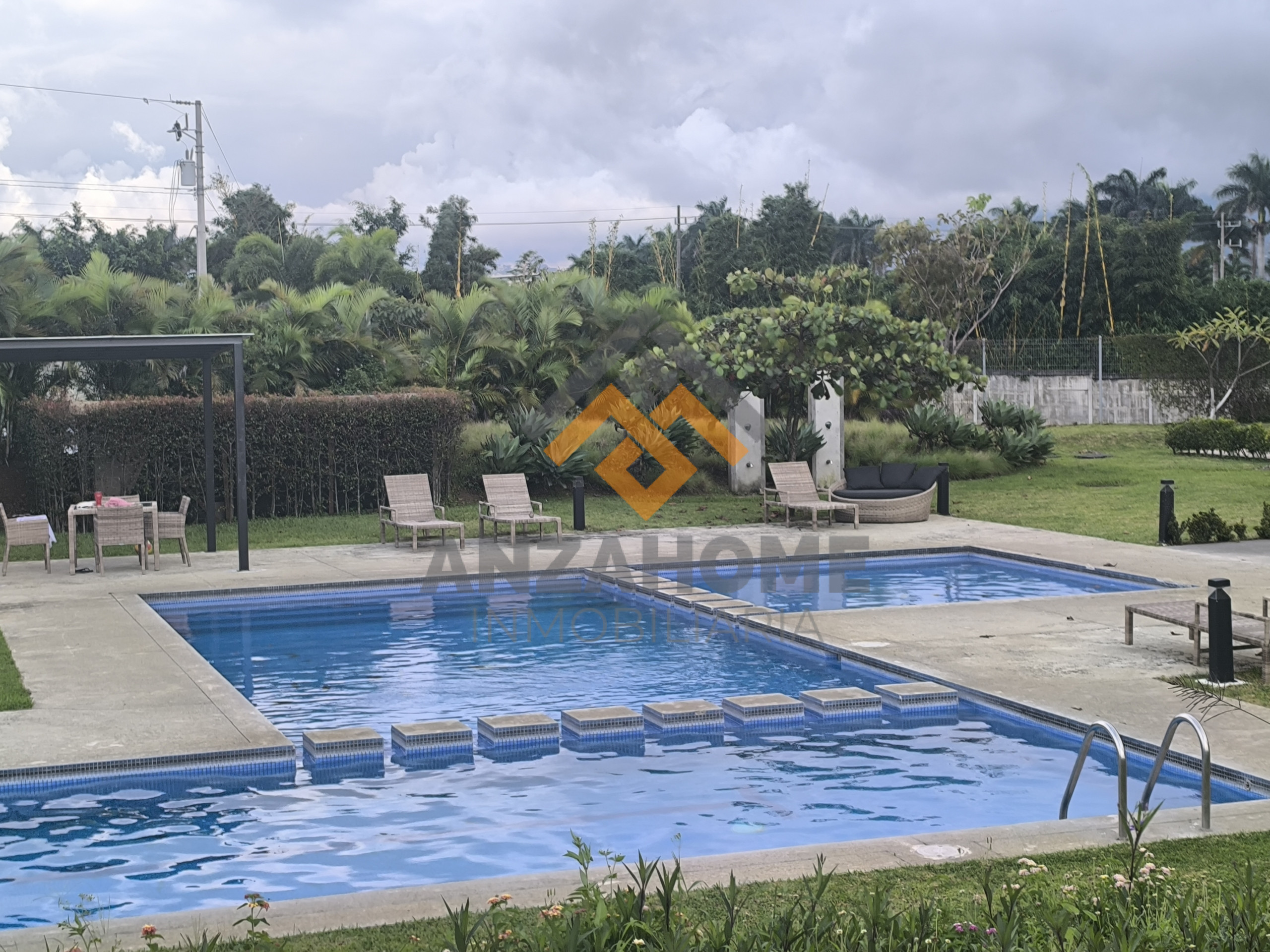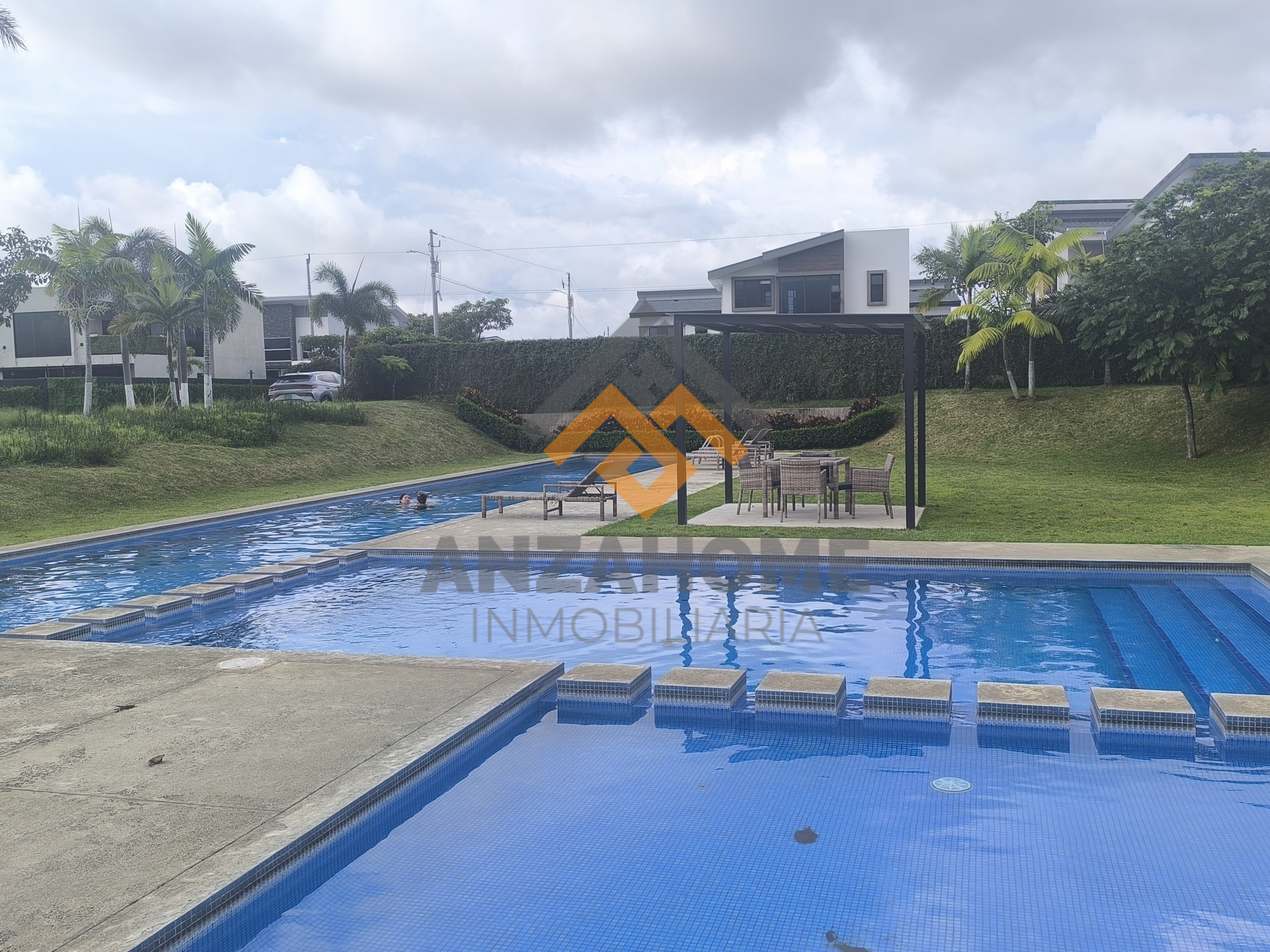 - Baño completo compartido por los dos dormitorios secundarios. AMENIDADES: 3 Piscina, Gimnasio, Sala de eventos amplia con cocina mesas y sillas, Parque infantil, Cancha de futbol, Parque de perros. Cuota condominal 73500 colones, incluye el agua. Lote 220 M2. Construcción 194.6 M2