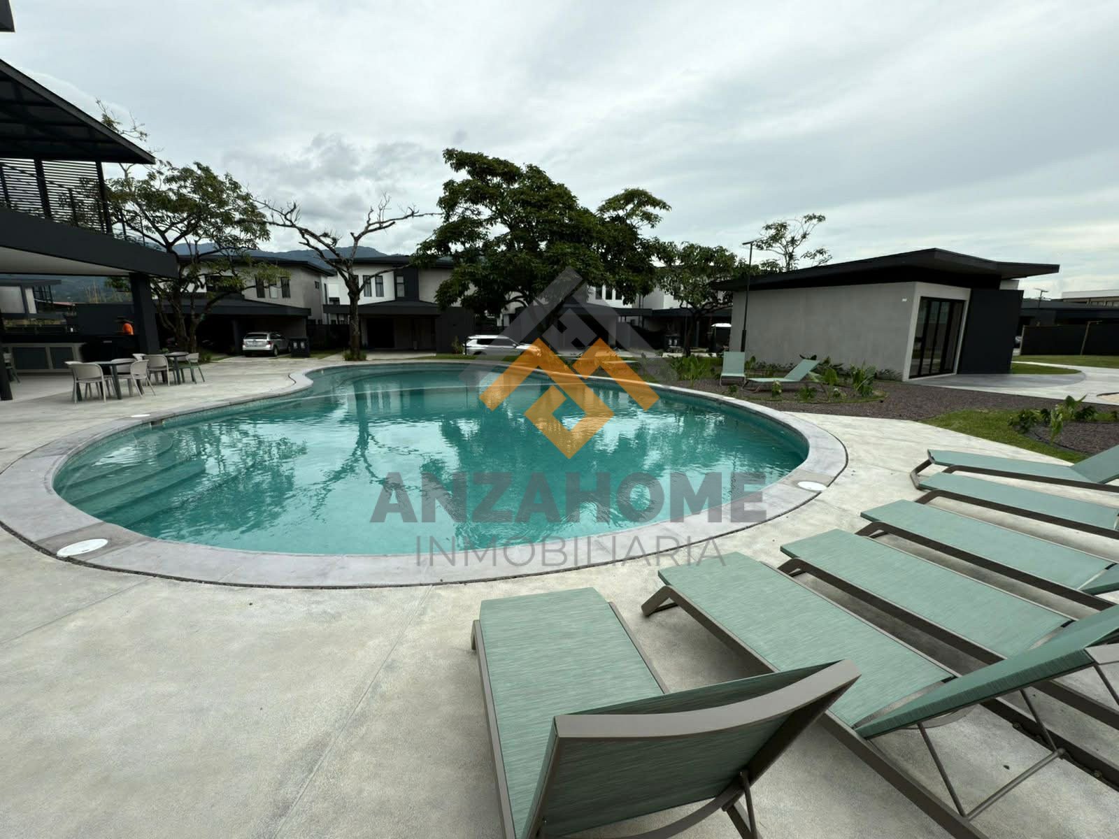 Área para disfrute a la par de la piscina recreativa, equipada con: mesas, sillas, futbolín, mesa de pingpong, parrillera, TVs, sanitarios y Wifi.